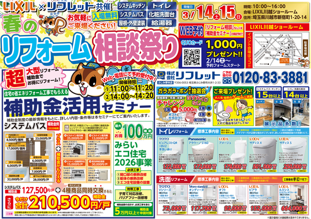 LIXIL×リフレット共催 春のリフォーム相談祭り!!