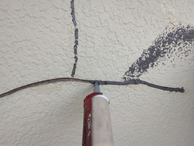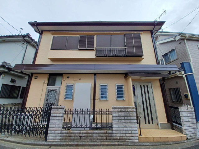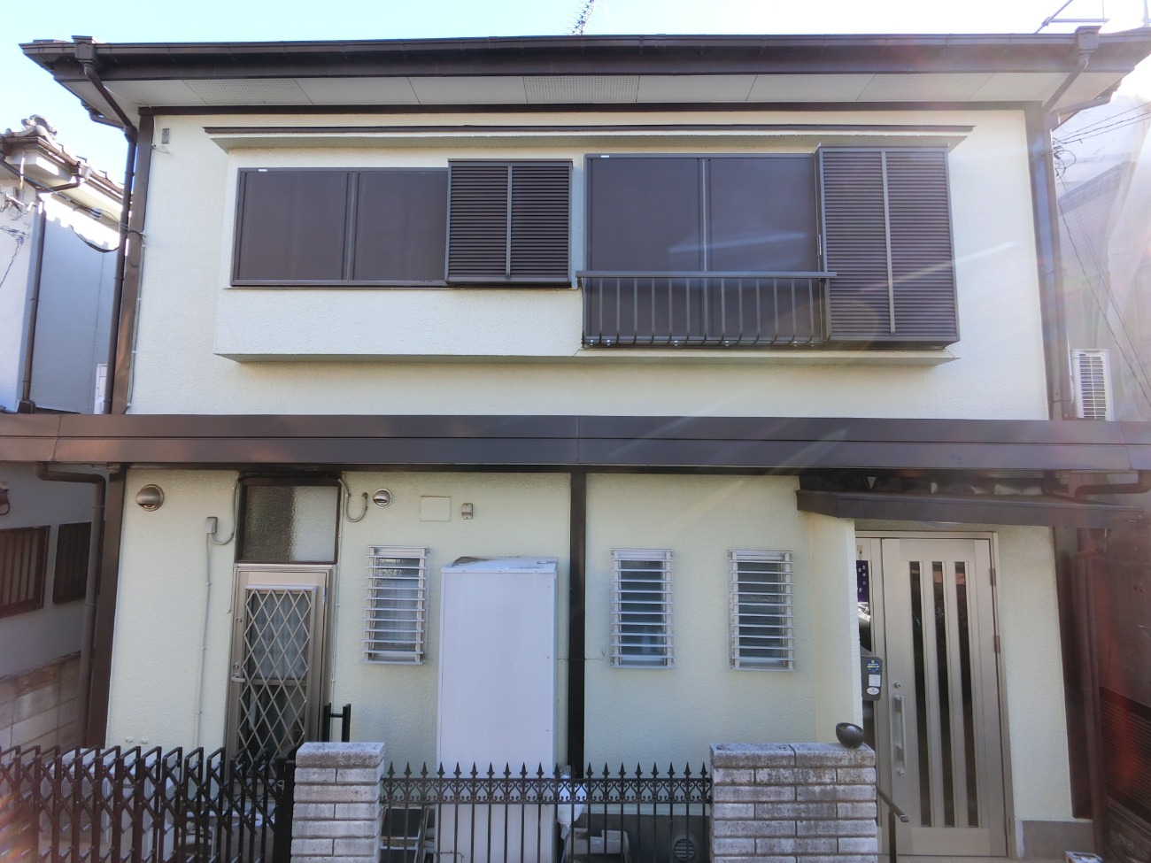13年前に玄関工事をさせていただいてから何度も工事のご依頼をいただいているお客様です。築50年、外壁塗装は11年前に行ったが、外壁のヒビが気になるとご相談いただきました。