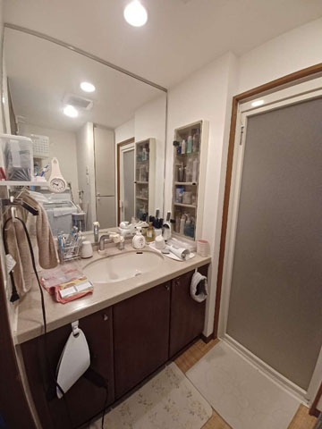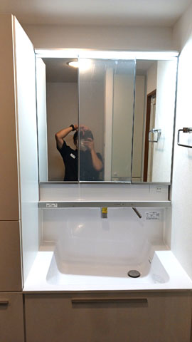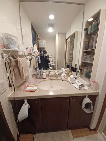 7年前より何度も工事のご依頼をいただいているお客様です。今回は洗面台の交換と洗面所の改修工事をご依頼いただきました。