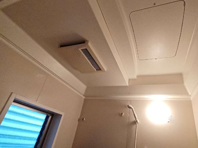 7年前よりキッチン水栓、レンジフード交換工事等をご依頼いただいているお客様です。17年使用している浴室換気扇の暖房はできるが、換気ができないので交換したいとご相談いただきました。