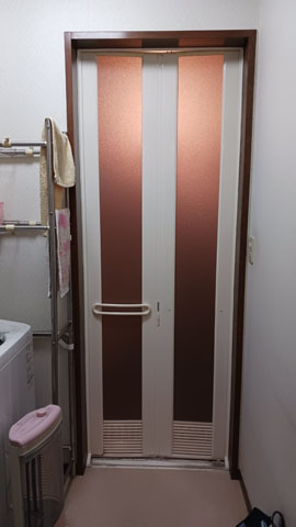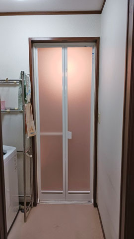 7年間に屋根外壁塗装工事をさせていただいてから何度も工事のご依頼をいただいているお客様です。約23年使用している浴室扉を交換したいとご相談いただきました。