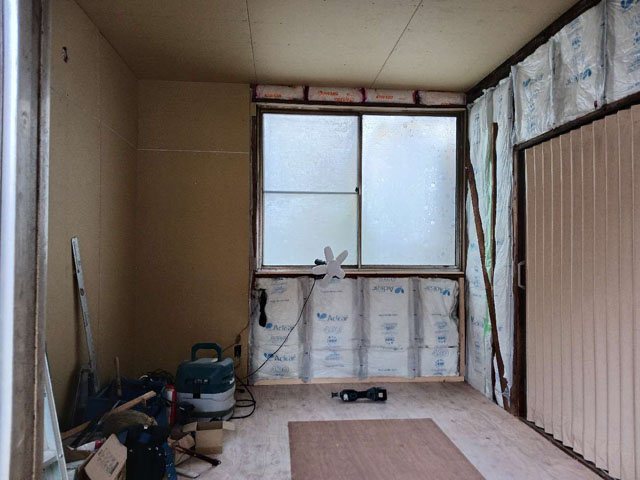 3年前に和室改修工事をさせていただいたお客様です。築50年、今回は別の部屋も寒いので断熱材を入れて内窓も付けたいとご相談いただきました。